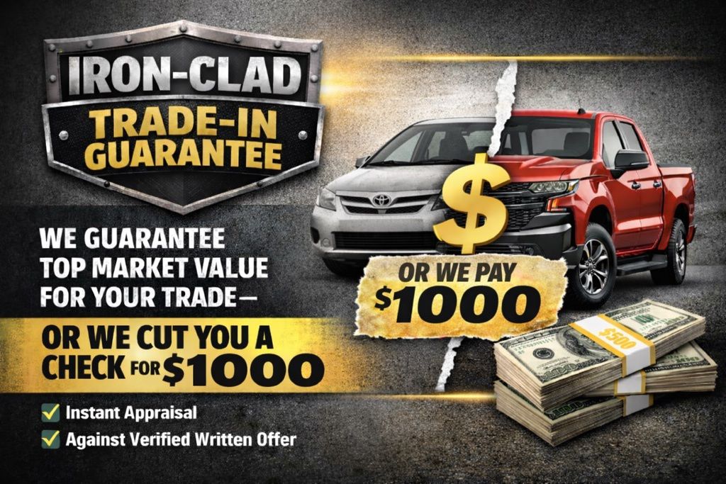 Get top market value for your trade at Iron Trail Motors. Bring in a verified written offer, and if we do not beat it, we will give you a $1,000 check. It is a simple, transparent way to trade with confidence.